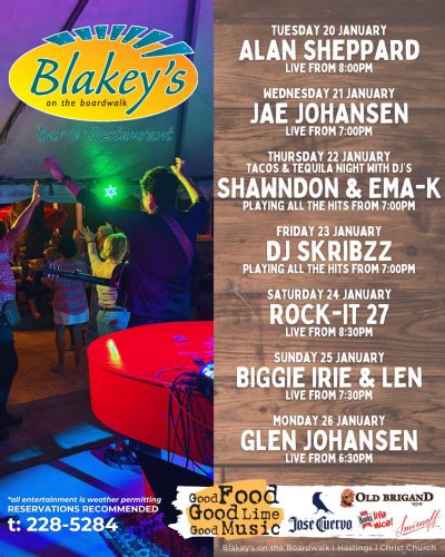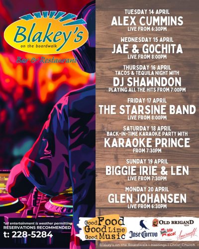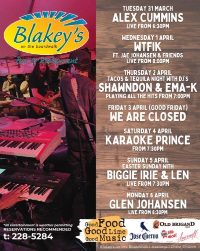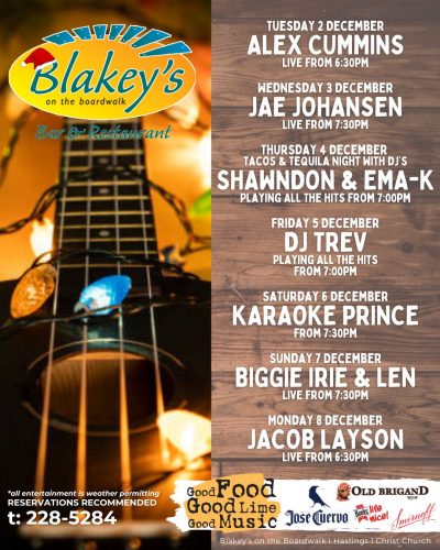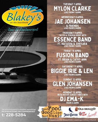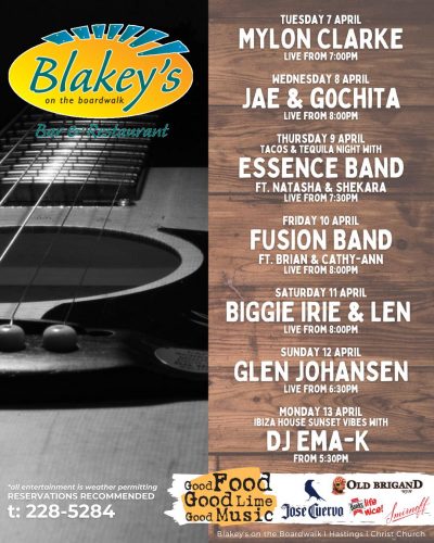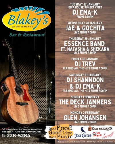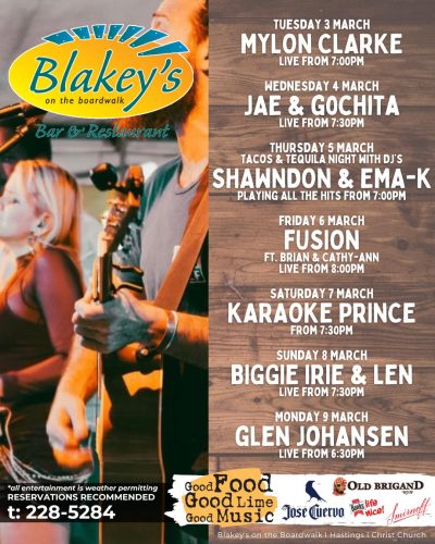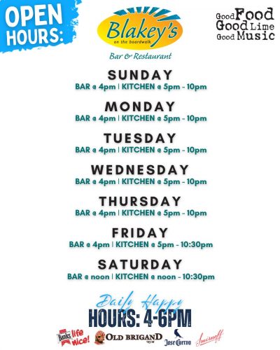 Kick back in your seat, raise your drink and rock out to the local entertainment featured at Blakey's on the Boardwalk! Weekends are a constant jam session as we feature local musical acts from all genres. Let the music fill your soul and have your body swaying to the beat as you will dance on the beach. Always have a happening night out on the town with your friends or your date here at Blakey's.
